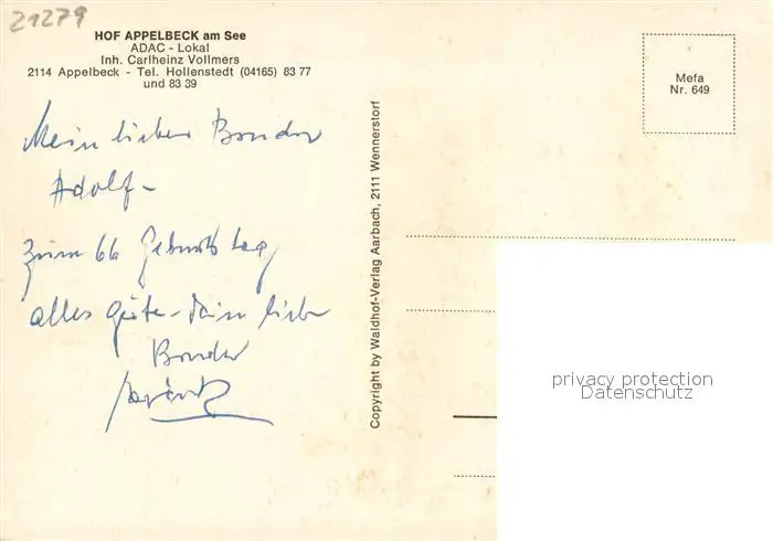 Appelbeck Hof Appelbeck am See ADAC-Lokal Appelbeck postalisch nicht gelaufen nach 1965 Erhaltung siehe scans [FriedD77] Frierer