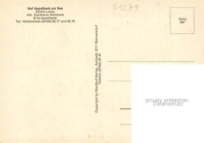 Appelbeck Hof Appelbeck am See ADAC Lokal Restaurant Appelbeck postalisch nicht gelaufen nach 1965 Erhaltung siehe scans [FriedD77] Frierer