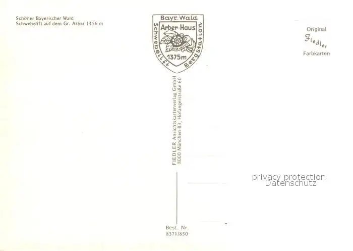 Arber Schwebelift auf dem Gr Arber Arber postalisch nicht gelaufen nach 1965 Erhaltung siehe scans [WerneD78] WernPID7