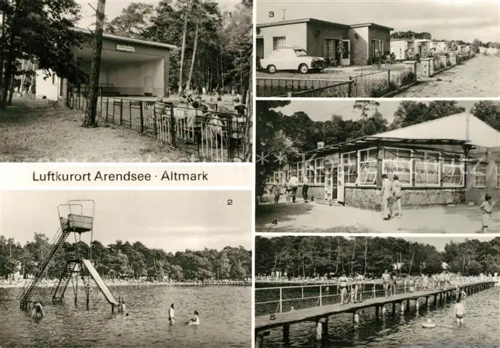 AK / Ansichtskarte Arendsee_Altmark Musikpavillon Strand Bungalowsiedlung HO Strandgaststaette Bad Arendsee Altmark