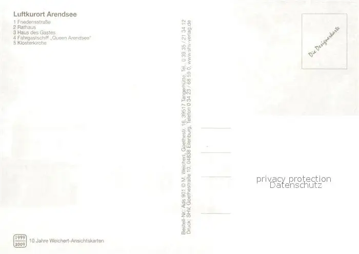 Arendsee_Ostseebad Friedensstrasse Rathaus Brunnen Haus des Gastes Fahrgastschiff Queen Arendsee Klosterkirche Arendsee_Ostseebad postalisch nicht gelaufen nach 1965 Erhaltung siehe scans [FriedD77] Frierer