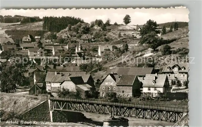 Arfeld Ortsansicht mit Kirche Eisenbahnbruecke Arfeld postalisch nicht gelaufen 1964 Erhaltung siehe scans [FriedD77] Frierer