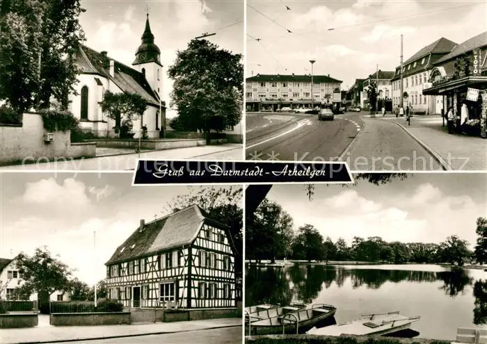 Arheilgen Kategorie Alte Ansichtskarten Postkarten bx53855 Arheilgen Kirche Boot Arheilgen postalisch nicht gelaufen nach 1965 Erhaltung siehe scans [NatalD47]
