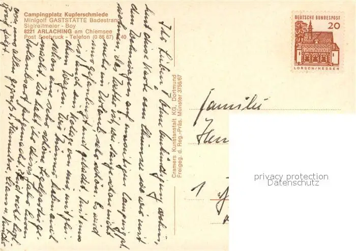 Arlaching Fliegeraufnahme Campingplatz Kupferschmiede Arlaching postalisch nicht gelaufen nach 1965 Erhaltung siehe scans [LiesaD40] LiesID40