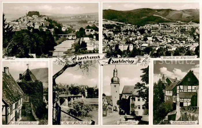 AK / Ansichtskarte Arnsberg_Westfalen Kaiserpfoertchen Am gruenen Turm Ruhrbruecke Glockenturm Arnsberg_Westfalen