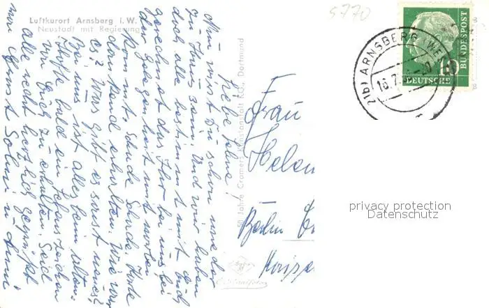 Arnsberg_Westfalen Neustadt mit Regierung Arnsberg_Westfalen postalisch gelaufen 1958 Erhaltung siehe scans [KathaD81] Kathoren