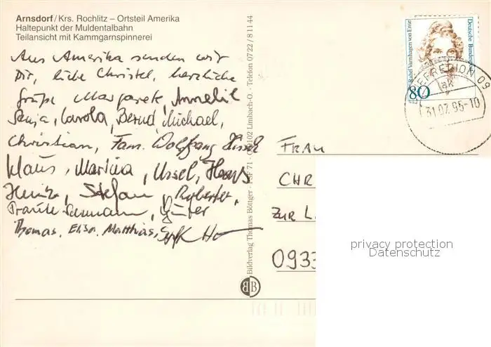 Arnsdorf_Rochlitz__Sachsen OT Amerika Dampfeisenbahn Panorama postalisch gelaufen 1995 Erhaltung siehe scans [WerneD78] WernPID7