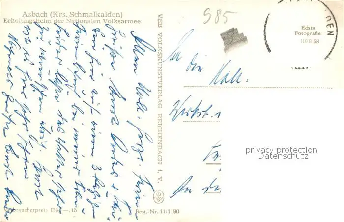 Asbach_Schmalkalden Erholungsheim der Nationalen Volksarmee Asbach Schmalkalden postalisch gelaufen 1958 Erhaltung siehe scans [FriedD77] Frierer