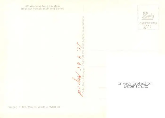 Aschaffenburg_Main Blick auf Pompejanum und Schloss Aschaffenburg Main postalisch nicht gelaufen 1965 Fliegeraufnahme Erhaltung siehe scans [FriedD77] Fliegeraufnahme Frierer