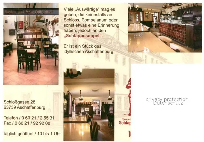 Aschaffenburg_Main Brauereigaststaette Schlappseppel Gaststube Theke Braukessel Aschaffenburg Main postalisch nicht gelaufen nach 1965 Werbekarte (keine Postkarte) Erhaltung siehe scans [WerneD78] Werbekarte (keine Postkarte) WernPID7