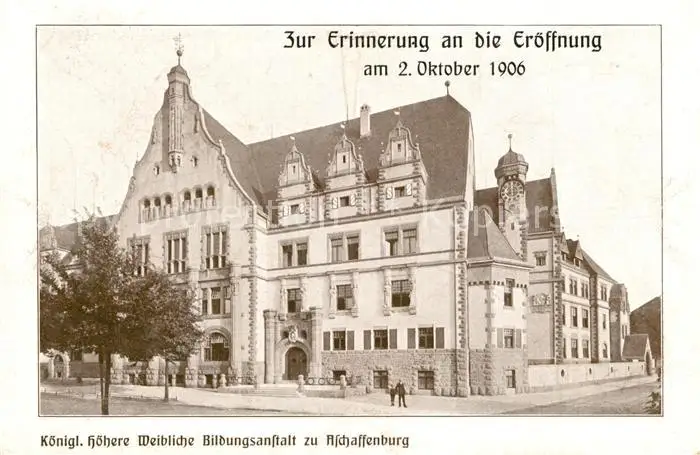 Aschaffenburg Main Kategorie Alte Ansichtskarten Postkarten bx80852 Aschaffenburg_Main Koeniglich hoehere weibliche Bildungsanstalt Erinnerung Eroeffnung Aschaffenburg Main postalisch nicht gelaufen 1906 Erhaltung siehe scans [KathaD81]