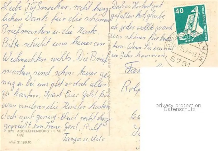 Aschaffenburg Main Kategorie Alte Ansichtskarten Postkarten bx73885 Aschaffenburg_Main Modeshop 2000 Aschaffenburg Main postalisch gelaufen 1978 Erhaltung siehe scans [PaolaD17]