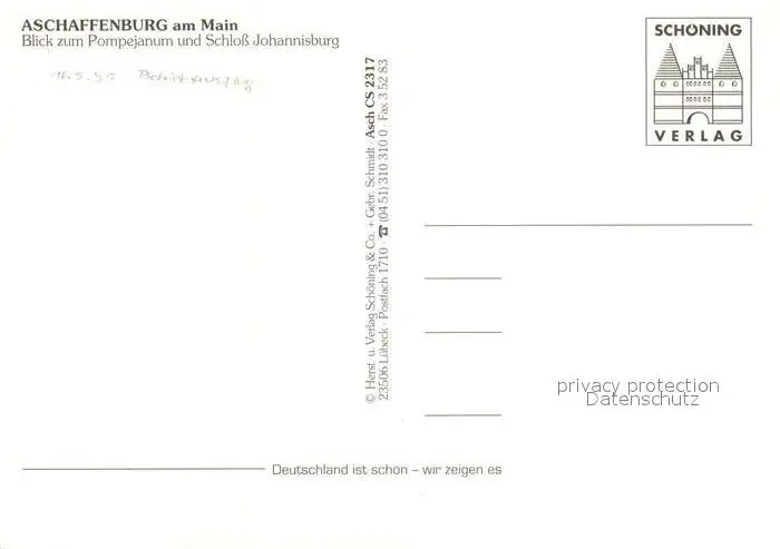 Aschaffenburg_Main Pompejanum und Schloss Johannisburg Fliegeraufnahme Aschaffenburg Main postalisch nicht gelaufen nach 1965 Erhaltung siehe scans [WerneD78] WernPID7