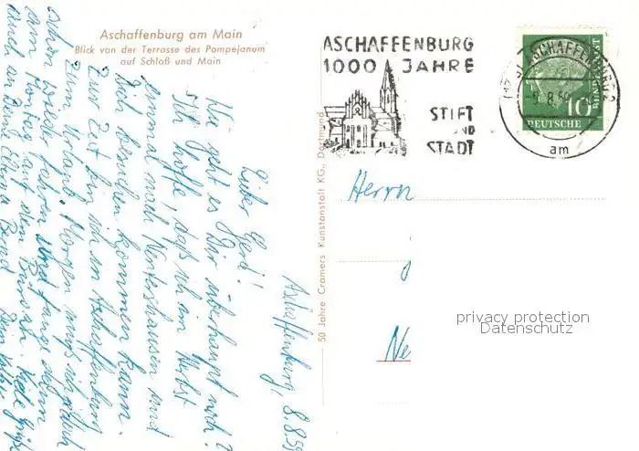 Aschaffenburg_Main Schloss Mainpartie Terrasse des Pompejanums Aschaffenburg Main postalisch gelaufen 1959 Erhaltung siehe scans [WerneD78] WernPID7