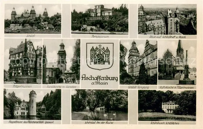 AK / Ansichtskarte Aschaffenburg_Main Sehenswuerdigkeiten der Stadt Wappen Aschaffenburg Main