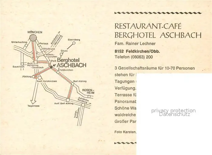 Aschbach_Westerham Berghotel Restaurant Alpenpanorama Aschbach_Westerham postalisch nicht gelaufen nach 1965 Werbekarte (keine Postkarte) Erhaltung siehe scans [FriedD77] Werbekarte (keine Postkarte) Frierer