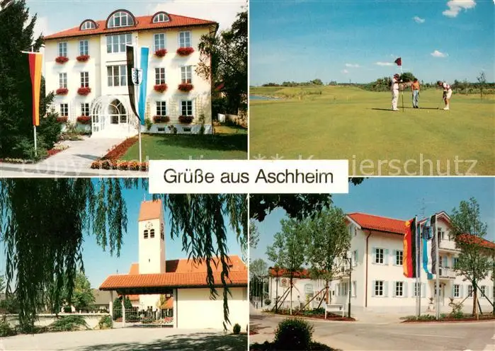 AK / Ansichtskarte Aschheim Rathaus Golfparkanlage Kirche St Peter und Paul Kulturelles Gebaeude Aschheim