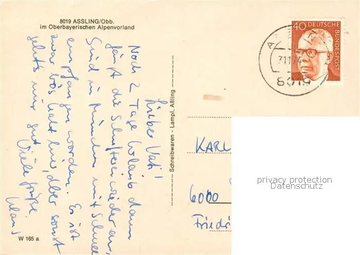 Assling Ebersberg Panorama Oberbayerisches Alpenvorland Assling postalisch gelaufen 1974 Erhaltung siehe scans [FriedD77] Frierer