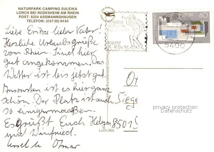 Assmannshausen Naturpark-Camping Suleika Assmannshausen postalisch gelaufen nach 1965 Erhaltung siehe scans [NatalD47] NataID47