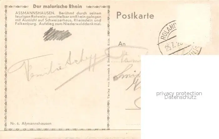 Assmannshausen Partie am Rhein Boote Serie Der malerische Rhein Nr. 6 Assmannshausen postalisch gelaufen 1921-1965 Erhaltung siehe scans [FriedD77] Frierer
