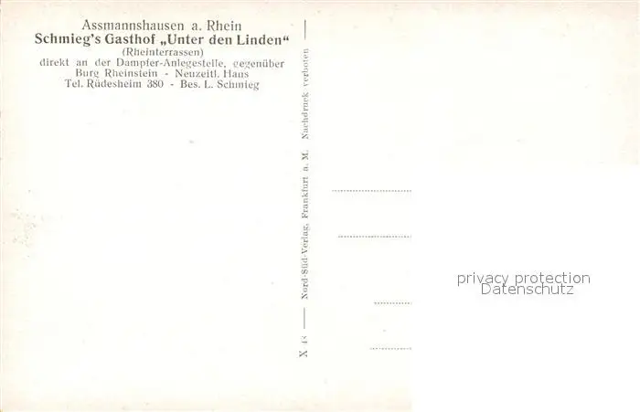 Assmannshausen Kategorie Alte Ansichtskarten Postkarten bx60371 Assmannshausen Schmiegs Gasthof unter den Linden Assmannshausen postalisch nicht gelaufen Erhaltung siehe scans [Darjalle]