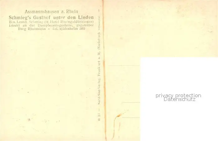 Assmannshausen Rhein Kategorie Alte Ansichtskarten Postkarten bx54381 Assmannshausen_Rhein Gasthof Unter den Linden Assmannshausen Rhein postalisch nicht gelaufen Erhaltung siehe scans [NatalD47]