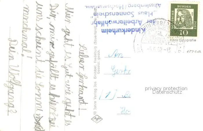 Astenberg Kinderkurheim AWO Astenberg postalisch gelaufen 1962 Erhaltung siehe scans [KathaD81] Kathoren