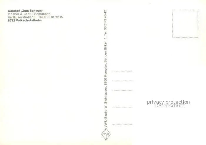Astheim_Kitzingen Gasthof Zum Schwan Restaurant Astheim_Kitzingen postalisch nicht gelaufen nach 1965 Erhaltung siehe scans [FriedD77] Frierer