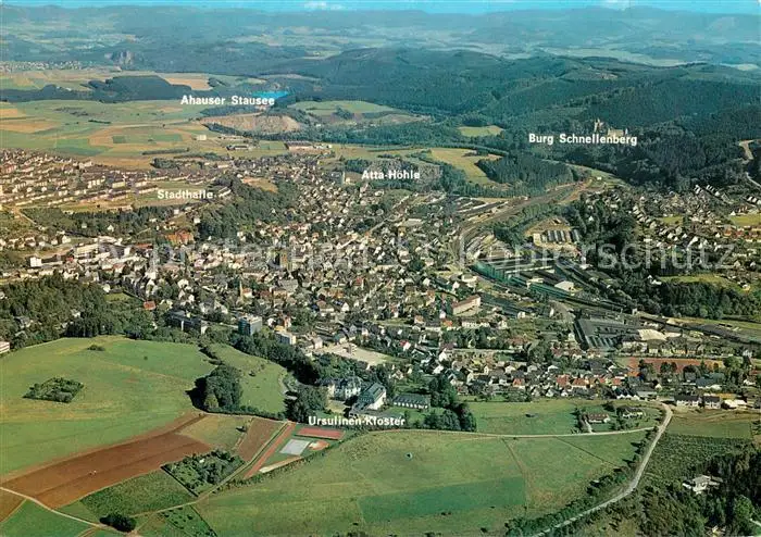 Attendorn Ahauser Stausee Stadthalle Atta Hoehle Burg Ursulinen Kloster Schnellenberg Fliegeraufnahme Attendorn postalisch nicht gelaufen nach 1965 Erhaltung siehe scans [WerneD78] WernPID7