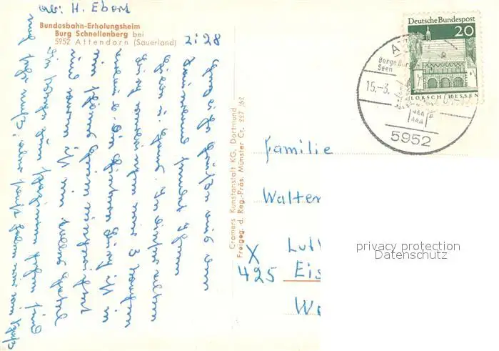 Attendorn Bundesbahn Erholungsheim Burg Schnellenberg Fliegeraufnahme Attendorn postalisch gelaufen nach 1965 Erhaltung siehe scans [FriedD77] Frierer