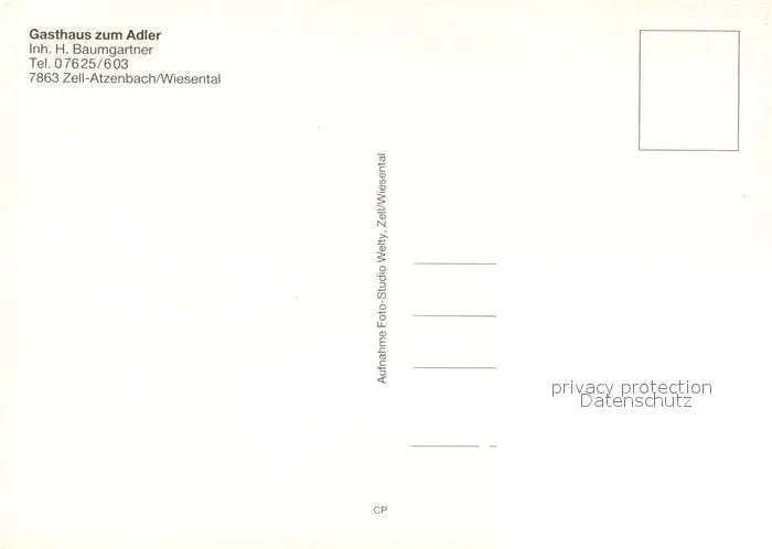 Atzenbach Gasthaus zum Adler im Schwarzwald Atzenbach postalisch nicht gelaufen nach 1965 Erhaltung siehe scans [FriedD77] Frierer