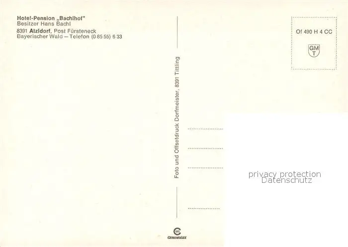 Atzldorf Hotel Pension Bachlhof Atzldorf postalisch nicht gelaufen nach 1965 Erhaltung siehe scans [LiesaD40] LiesID40