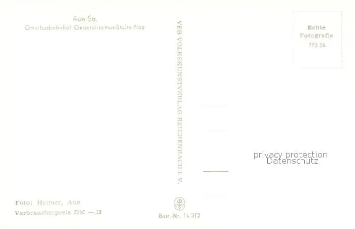 Aue_Sachsen Kategorie Alte Ansichtskarten Postkarten bx53564 Aue_Sachsen Omnibusbahnhof Generalissimus Stalin Platz Aue_Sachsen postalisch nicht gelaufen Erhaltung siehe scans [NatalD47]