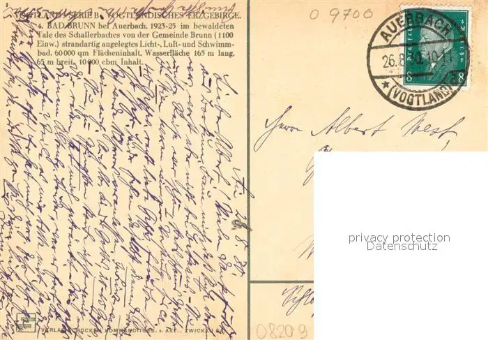 Auerbach Erzgebirge Kategorie Alte Ansichtskarten Postkarten bx90781 Auerbach_Erzgebirge Bad Brunn Auerbach Erzgebirge postalisch gelaufen 1930 Erhaltung siehe scans [WerneD78]