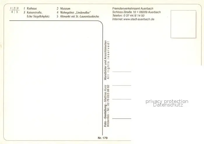 Auerbach_Vogtland Rathaus Kaiserstrasse Museum Lindenallee Altmarkt Laurentiuskirche Auerbach_Vogtland postalisch nicht gelaufen nach 1965 Erhaltung siehe scans [KathaD81] Kathoren
