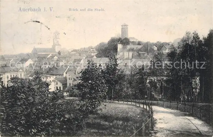 Auerbach_Vogtland Stadtblick Auerbach_Vogtland postalisch gelaufen bis 1920 Erhaltung siehe scans [WerneD78] WernPID7