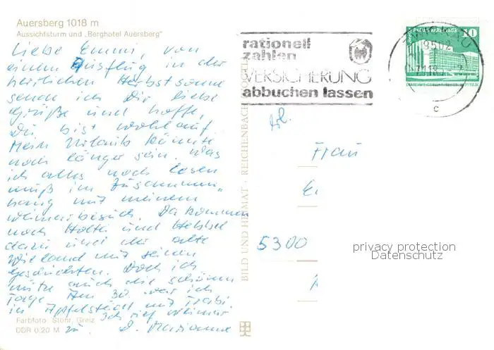 Auersberg_Wildenthal Aussichtsturm und Berghotel Auersberg Auersberg Wildenthal postalisch gelaufen 1983 Erhaltung siehe scans [FriedD77] Frierer