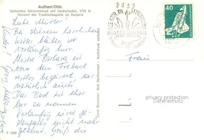 Aufham Anger Kategorie Alte Ansichtskarten Postkarten bx62316 Aufham_Anger Freibad Konzert Trachtenkapelle Kurpark Aufham Anger postalisch gelaufen 1976 Erhaltung siehe scans [KathaD81]