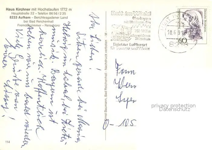 Aufham_Anger Haus Kirchner mit Hochstaufen Aufham Anger postalisch gelaufen 1991 Erhaltung siehe scans [WerneD78] WernPID7