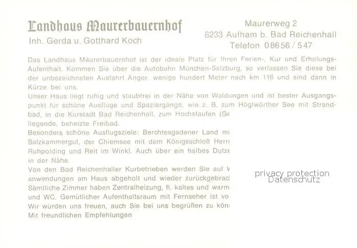 Aufham Anger Kategorie Alte Ansichtskarten Postkarten bx62324 Aufham_Anger Landhaus Maurerbauernhof Aufham Anger postalisch nicht gelaufen nach 1965 Werbekarte (keine Postkarte) Erhaltung siehe scans [KathaD81]