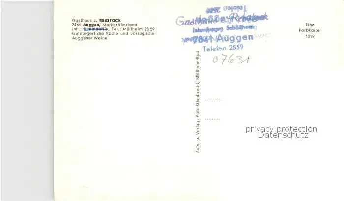 Auggen Gasthaus zum Rebstock Gastraeume Auggen postalisch nicht gelaufen nach 1965 Erhaltung siehe scans [WerneD78] WernPID7