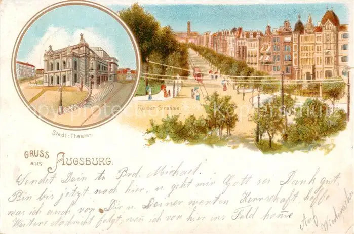 Augsburg Kaiser-Strasse u. Stadt-Theater Feldpost Augsburg postalisch gelaufen 1915 Feldpost auf Karte (Motiv) Erhaltung siehe scans [LiesaD40] Feldpost auf Karte (Motiv) LiesID40