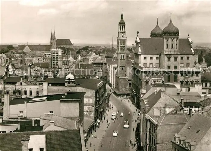 AK / Ansichtskarte Augsburg Maximilianstrasse mit Rathaus und Perlach Augsburg