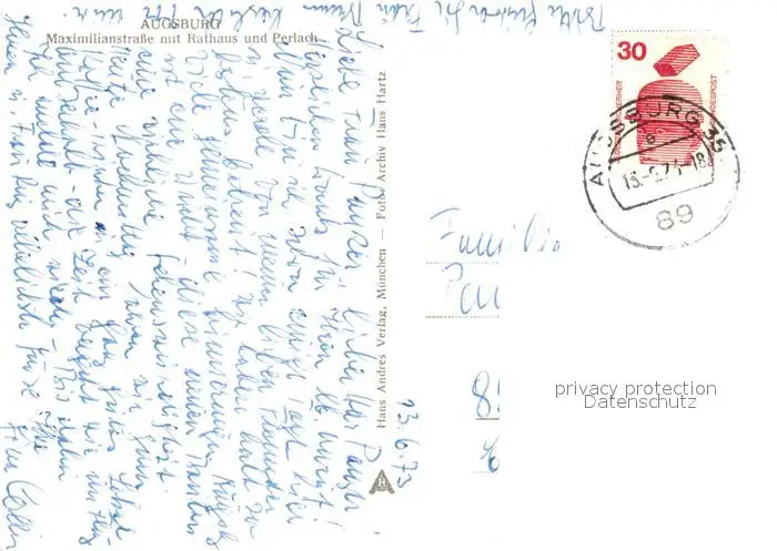 Augsburg Maximilianstrasse mit Rathaus und Perlach Augsburg postalisch gelaufen 1973 Erhaltung siehe scans [WerneD78] WernPID7