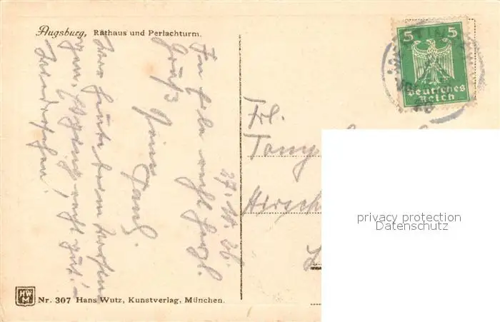 Augsburg Rathaus mit Perlachturm Augsburg postalisch gelaufen 1926 Erhaltung siehe scans [WerneD78] WernPID7