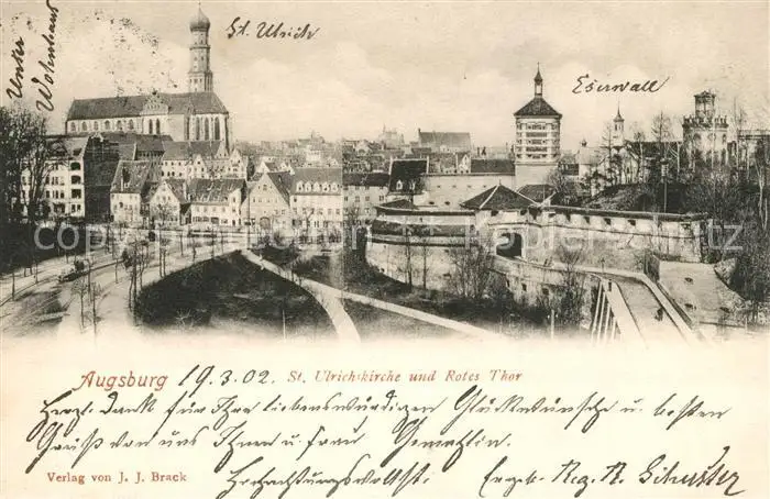 Augsburg St Ulrichskirche und Rotes Thor Augsburg postalisch gelaufen 1902 Erhaltung siehe scans [WerneD78] WernPID7