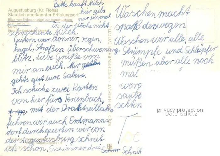 Augustusburg Panorama Blick von Erdmannsdorf zur Augustusburg Drahtseilbahn Markt Karl Marx Strasse Augustusburg postalisch nicht gelaufen 1985 Erhaltung siehe scans [FriedD77] Frierer
