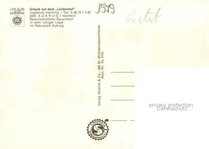 Aukrug Urlaub auf dem Lindenhof Aukrug postalisch nicht gelaufen 1979 Erhaltung siehe scans [WerneD78] WernPID7