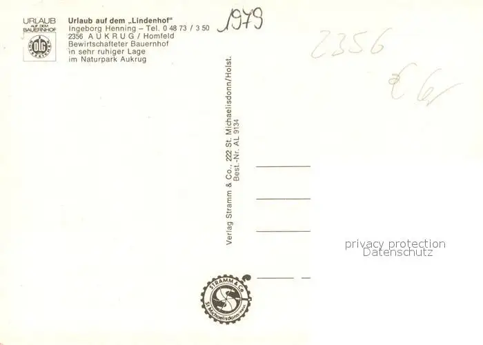 Aukrug Urlaub auf dem Lindenhof Aukrug postalisch nicht gelaufen nach 1965 Erhaltung siehe scans [WerneD78] WernPID7