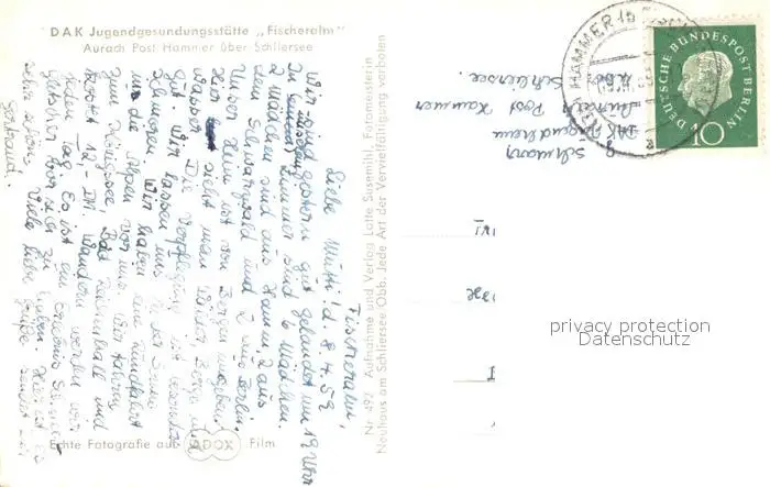 Aurach_Hammer DAK Jugendgesundungsstaette Fischeralm Teilansichten Aurach Hammer postalisch gelaufen 1959 Erhaltung siehe scans [WerneD78] WernPID7
